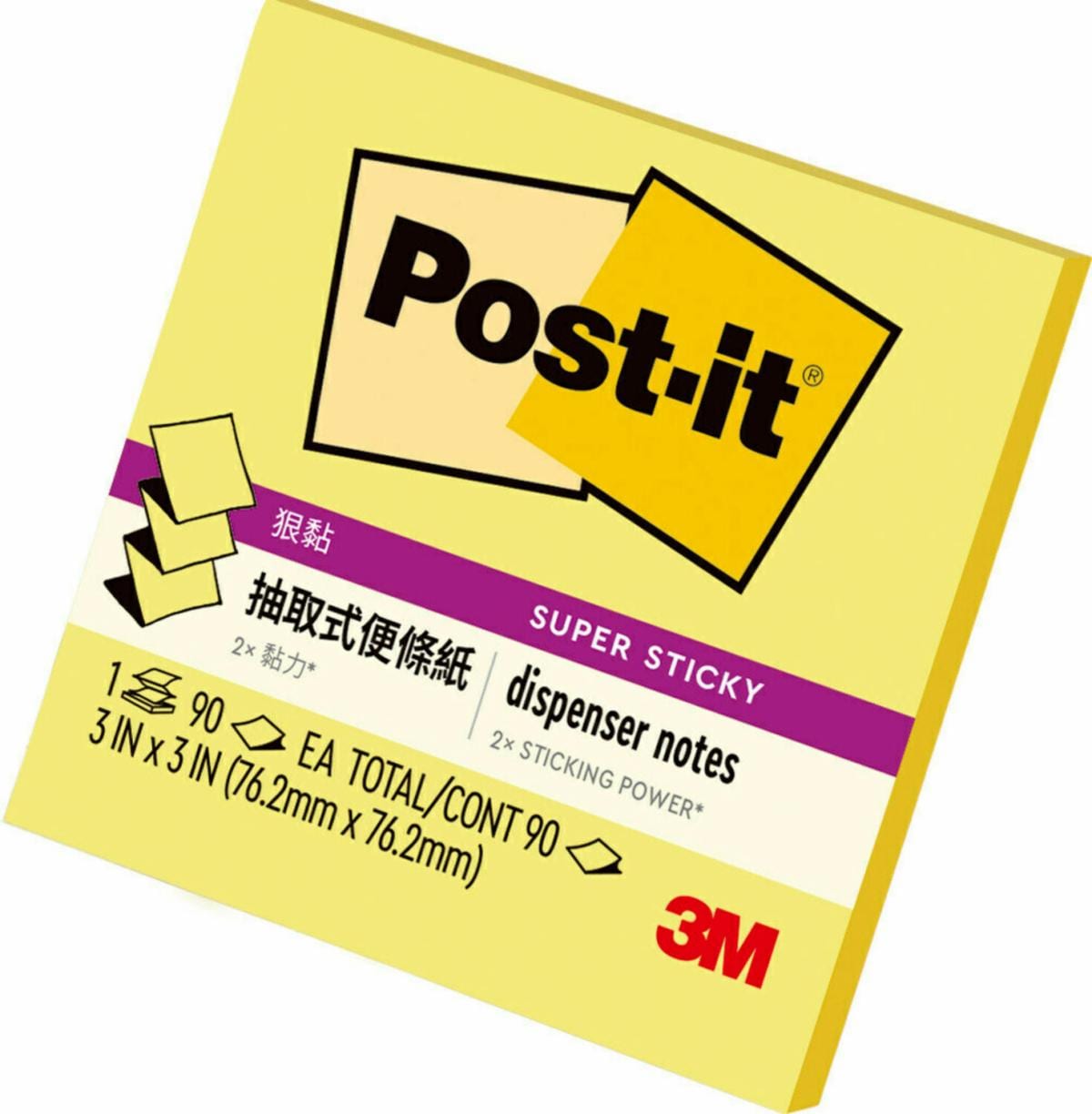 3M™ Post-it® 利貼® 狠黏™ 抽取式便條紙 R330S, 黃色, 75公釐 x 75公釐, 90張/本